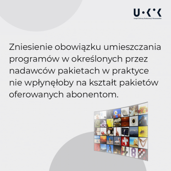 Zgromadzone w postępowaniach dowody wskazały, że zniesienie obowiązku umieszczania programów w określonych przez nadawców pakietach w praktyce nie wpłynęłoby na kształt pakietów oferowanych abonentom. Dodatkowo, przeniesienie programów z pakietów podstawowych o dużej oglądalności do pakietów tematycznych lub premium, nabywanych przez mniejszą liczbę abonentów, mogłoby się wiązać ze spadkiem oglądalności tych programów, co z kolei przekładałoby się na obniżenie przychodów nadawców z reklam emitowanych w tych kanałach. Nadawcy, dążąc do zrekompensowania sobie spadków przychodów reklamowych, mogliby podnieść wysokość opłat pobieranych od operatorów telewizyjnych. W efekcie wzrostu cen na rynku ucierpieliby zarówno operatorzy telewizyjni nabywający pakiety od nadawców, jak i konsumenci będący klientami docelowymi.