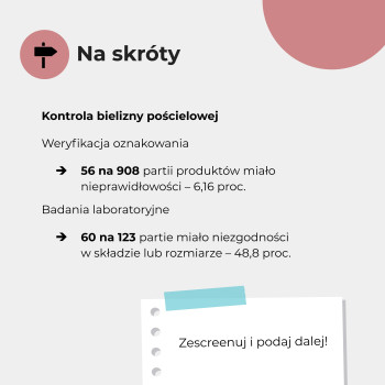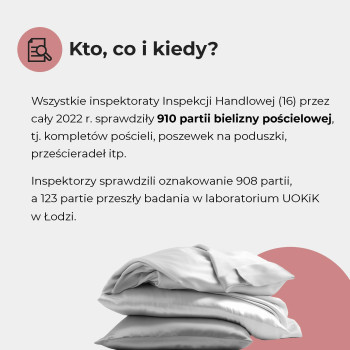 - Sprawdziliśmy 910 partii bielizny pościelowej – kompletów pościeli, poszewek na poduszki, prześcieradeł. 123 partie zbadaliśmy też w laboratorium.