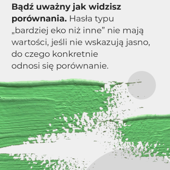 - Bądź uważny jak widzisz porównania - hasła typu „bardziej eko niż inne” nie mają wartości, jeśli nie wskazują jasno, do czego konkretnie odnosi się porównanie.