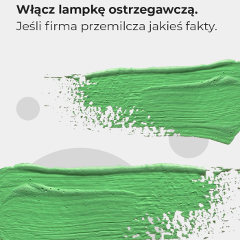 - Włącz lampkę ostrzegawczą - jeśli firma przemilcza fakty. Jeśli przekazy promują wyłącznie pozytywne dane, pomijają istotne kwestie np. emisje z innych obszarów działalności – możesz mieć do czynienia z greenwashingiem.