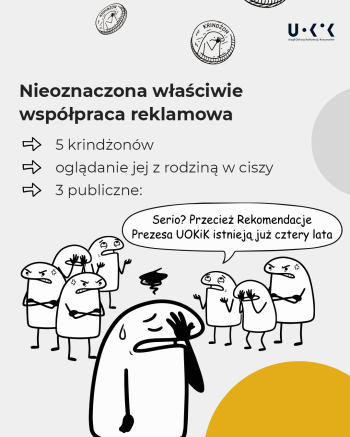 - Nieoznaczona właściwie współpraca reklamowa – 5 krindżonów, obowiązkowe oglądanie reklamy z rodziną w ciszy i trzy publiczne: Serio? Ktoś się na to nabiera? Przecież rekomendacje Prezesa UOKiK istnieją już cztery lata…