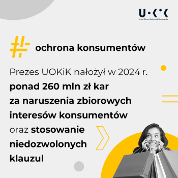 W 2024 r. Prezes UOKiK wszczął 41 postępowań w sprawie praktyk naruszających zbiorowe interesy konsumentów oraz dotyczących uznania postanowień wzorca umowy za niedozwolone, a także 128 postępowań wyjaśniających. Wydał 70 decyzji, w których nałożył łącznie prawie 263 mln zł sankcji pieniężnych na przedsiębiorców oraz ponad 2,5 mln zł kar na osoby zarządzające. Prezes Urzędu wystosował również 267 wystąpień miękkich do przedsiębiorców z zakresu ochrony konsumentów.