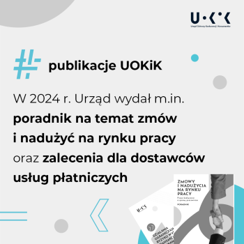 Na uwagę zasługuje również publikacja poradnika dotyczącego zmów na rynku pracy. Było to szczególnie istotne ze względu na brak powszechnej wiedzy, że niektóre praktyki pracodawców mogą być uznane za ograniczające konkurencję. Prezes UOKiK na konkretnych przykładach wskazał te działania, np. wspólne uzgadnianie wysokości płac dla pracowników lub brak podwyżek, czy też ustalenia o niekonkurowaniu o pracownika. W 2024 r. zostały również wszczęte postępowania wyjaśniające dotyczące rynku pracy. Sprawdzane są praktyki właścicieli sieci Biedronka i Dino, którzy razem z firmami transportowymi mogli umówić się, że nie będą konkurować o swoich pracowników - kierowców.