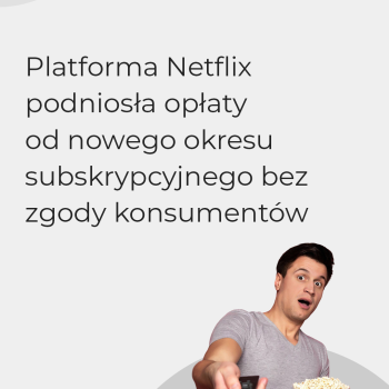 Oglądasz swój ulubiony serial – tak jak zwykle, w tej samej jakości i planie subskrypcyjnym. Nie zmieniasz ustawień, ani warunków usługi, mimo to zauważasz, że twoja karta płatnicza została obciążona wyższą opłatą niż ta, na którą się zgodziłeś wykupując usługę. Wielu użytkowników Netflixa znalazło się w podobnej sytuacji. Informacja platformy o podwyżce opłaty od nowego, miesięcznego okresu subskrypcyjnego wprawdzie została zawarta np. w e-mailu i pojawiała się po zalogowaniu do konta, jednak nie zostały spełnione warunki niezbędne do tego, aby zmiany dotyczące ceny były zgodne z prawem. Brak reakcji po stronie konsumenta na informację o podwyżce, Netflix traktuje jako zgodę na wyższą opłatę.