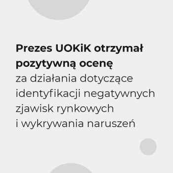 - Prezes UOKiK otrzymał pozytywną ocenę m.in. za działania dotyczące identyfikacji negatywnych zjawisk rynkowych i wykrywania naruszeń.