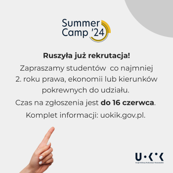 - Nasze warsztaty są skierowane do studentów co najmniej drugiego roku prawa, ekonomii lub kierunków pokrewnych. Pozwalają na poznanie pracy ekspertów UOKiK na rzecz ochrony konkurencji. Ruszyła już rekrutacja do Summer Camp 2024, termin zgłoszeń upływa 16 czerwca. Komplet informacji można znaleźć na uokik.gov.pl. Liczymy, że część uczestników programu dołączy do naszego zespołu. Będą mogli kształtować ochronę konkurencji na polskim rynku, w tym poprzez identyfikowanie oraz usuwanie antykonkurencyjnych praktyk – dodaje Prezes UOKiK Tomasz Chróstny.
