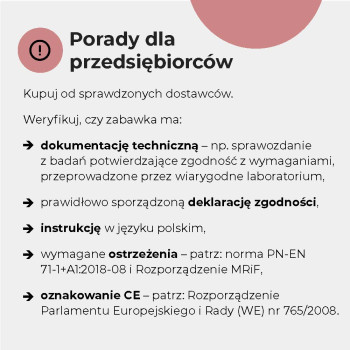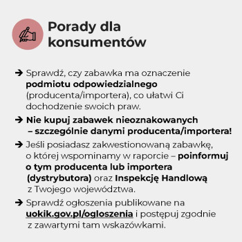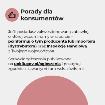 - Zanim kupisz zabawkę, sprawdź jej wykonanie! Upewnij się, że ma znak CE. Więcej porad znajdziesz w raportach IH i filmie.