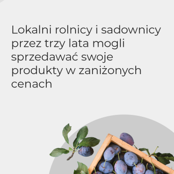 - Lokalni rolnicy i sadownicy przez trzy lata mogli sprzedawać swoje produkty po zaniżonych cenach.