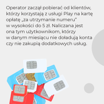 Spółka P4 zaczęła pobierać od klientów korzystających z ofert „Play na Kartę OdNowa” oraz „Play na Kartę 3.0” opłatę za utrzymanie numeru. Została ona wprowadzona do umowy jednostronnie, pomimo braku podstawy ustawowej czy klauzuli upoważniającej spółkę do wprowadzania takich zmian i może stanowić naruszenie zbiorowych interesów konsumentów.