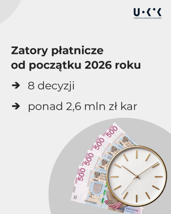 - Prezes UOKiK wydał w 2026 r. osiem decyzji, w których nałożył ponad 2,6 mln zł kar za zatory płatnicze.