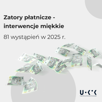 UOKiK kontynuuje również interwencje miękkie wobec kolejnych podmiotów, których dyscyplina płatnicza budzi wątpliwości i może wskazywać na ryzyko powstania zatorów płatniczych. Przedsiębiorcy są informowani o zauważonych nieprawidłowościach i możliwych konsekwencjach braku poprawy. Wystąpienia miękkie wpisują się w szeroko rozumianą prewencję – kształtują świadomość i kulturę płatniczą przedsiębiorców oraz umożliwiają zmianę ich praktyk bez konieczności wszczynania postępowania. Od początku roku 81 przedsiębiorców otrzymało wystąpienia miękkie.