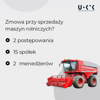 Prezes UOKiK pozyskał informacje o możliwym naruszeniu konkurencji przy sprzedaży maszyn rolniczych na podstawie własnych analiz oraz po przeprowadzonych przeszukaniach. Uzyskane dowody dały podstawę do wszczęcia dwóch postępowań przeciwko łącznie 17 podmiotom.
