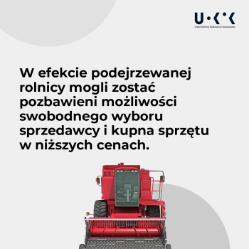- Podejrzewamy, że sprzedaż maszyn rolniczych, m.in. ciągników i kombajnów popularnych marek prowadzona była niezgodnie z prawem ochrony konkurencji. Przedsiębiorcy mogli dzielić między sobą rynek i wymieniać informacje o stosowanych cenach. W efekcie ich działań rolnicy mogli zostać pozbawieni możliwości wyboru sprzedawcy oraz zakupów maszyn rolniczych w niższych cenach – mówi Prezes UOKiK Tomasz Chróstny.