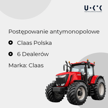 Drugie postępowanie prowadzone jest przeciwko firmie Claas Polska, która zarządza systemem dystrybucji maszyn rolniczych Claas oraz sześciu dealerom tej marki: Agro Sznajder, Agro Sznajder WKP, Przedsiębiorstwu Techniczno-Handlowemu Roltex, Świerkot, Agrimasz oraz Agroas.