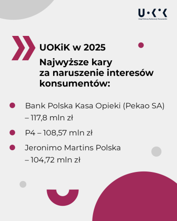 – To był rok zdecydowanych działań – zarówno wobec nieuczciwych praktyk rynkowych, jak i zmów ograniczających konkurencję. Na przedsiębiorców naruszających przepisy nałożyłem ponad miliard złotych sankcji. Nasze działania to jednak nie tylko kary, ale również realne zmiany w praktykach przedsiębiorców i uczciwe rekompensaty dla klientów. Budujemy rynek, na którym ma wygrywać przejrzystość, uczciwość i równe zasady gry. Dbamy o to, by w relacjach z przedsiębiorcą konsument nie był słabszą stroną – zaznacza Prezes UOKiK Tomasz Chróstny.