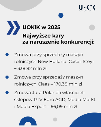 2025 rok to również rozbicie trwającej prawie 10 lat zmowy pomiędzy spółką Jura Poland i właścicielami sklepów RTV Euro AGD, Media Markt i Media Expert. Przedsiębiorcy ustalali wspólnie ceny ekspresów do kawy marki Jura, przez co konsumenci nie mogli kupić taniej tych produktów. Prezes UOKiK nałożył na przedsiębiorców ponad 66 mln zł kar. Dodatkowo osoba odpowiedzialna za niedozwolone porozumienie w Jura Poland otrzymała karę prawie 250 tys. zł.