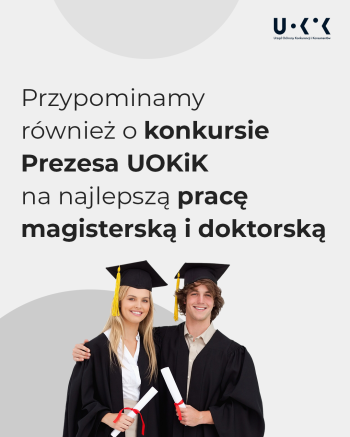 Przypominamy również o konkursie Prezesa UOKiK na najlepszą pracę magisterską i doktorską. To szansa na zdobycie nagród finansowych – pula 84 tys. zł – oraz płatnych praktyk absolwenckich. Najlepsze prace magisterskie wybieramy co roku, a rozprawy doktorskie co trzy lata. Wkrótce ogłosimy laureatów aktualnej edycji konkursu i terminy zgłoszeń do kolejnej. Szczegóły na UOKiK >>>