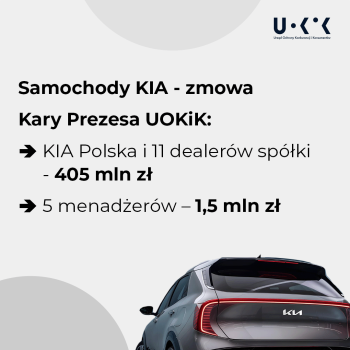 - Prezes UOKiK nałożył ponad 405 mln zł na KIA Polska i 11 dealerów spółki. Przedsiębiorcy zmówili się w sprawie cen samochodów i podzielili między sobą rynek.
