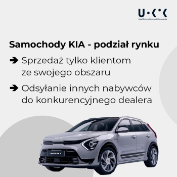 Ponadto od 2017 r. spółka KIA Polska i jej dystrybutorzy podzielili rynek pojazdów oferowanych ośrodkom szkolenia kierowców. Polegał on na udzielaniu przez KIA Polska wsparcia sprzedaży samochodów do nauki jazdy jedynie tym dealerom, którzy wygrali w danym województwie przetarg na dostawę pojazdów do wojewódzkich ośrodków ruchu drogowego. Tym samym szkoły nauki jazdy z tych województw również miały ograniczoną możliwość otrzymania konkurencyjnej oferty od innego dystrybutora KIA.